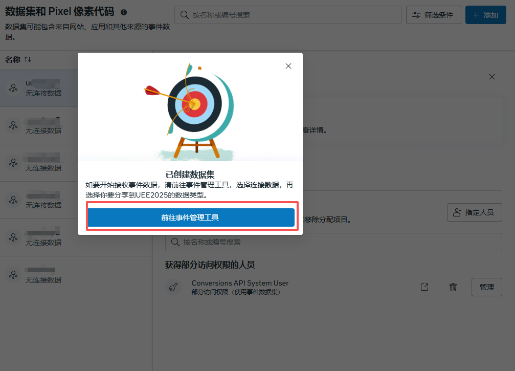 (4)创建完成后,跳转页面左侧,点击数据源--数据集