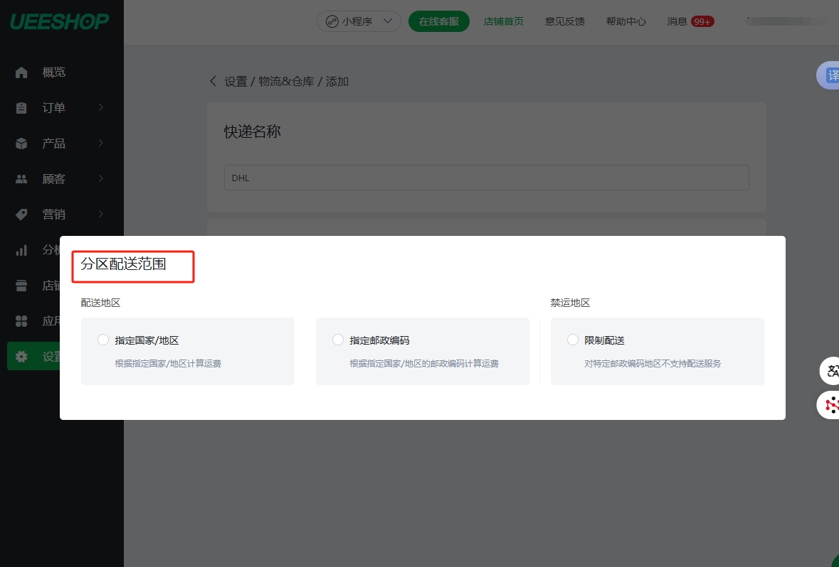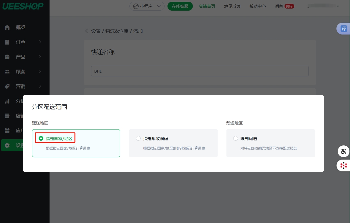 如何设置快递费用(固定费用)?