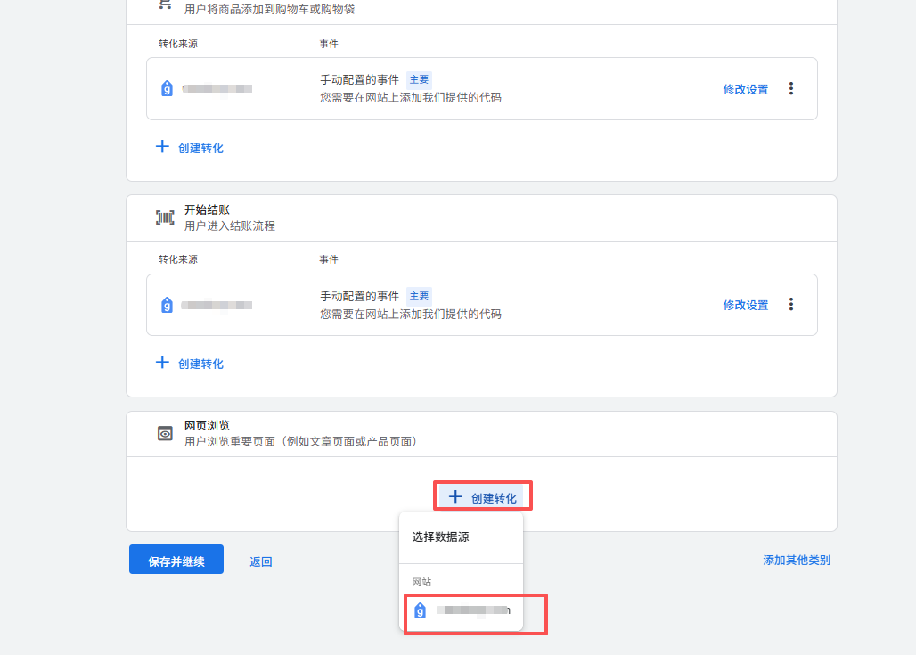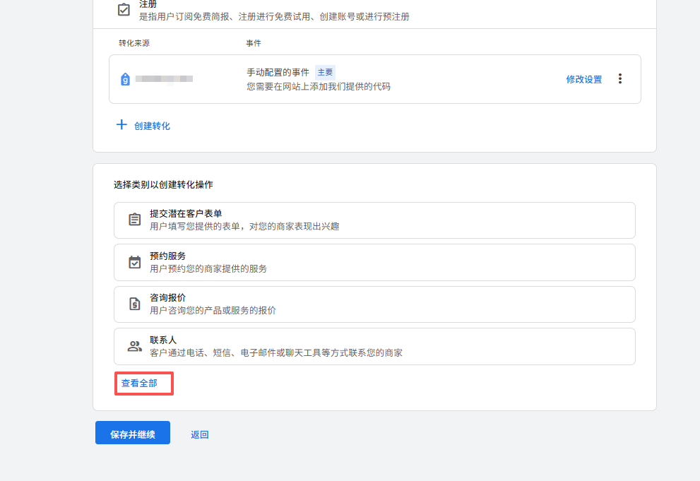 (41)完成一个事件代码的设置之后,返回到谷歌页面,继续查看其他转化目标代码进行复制