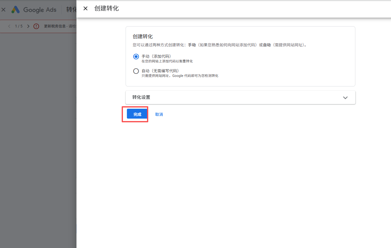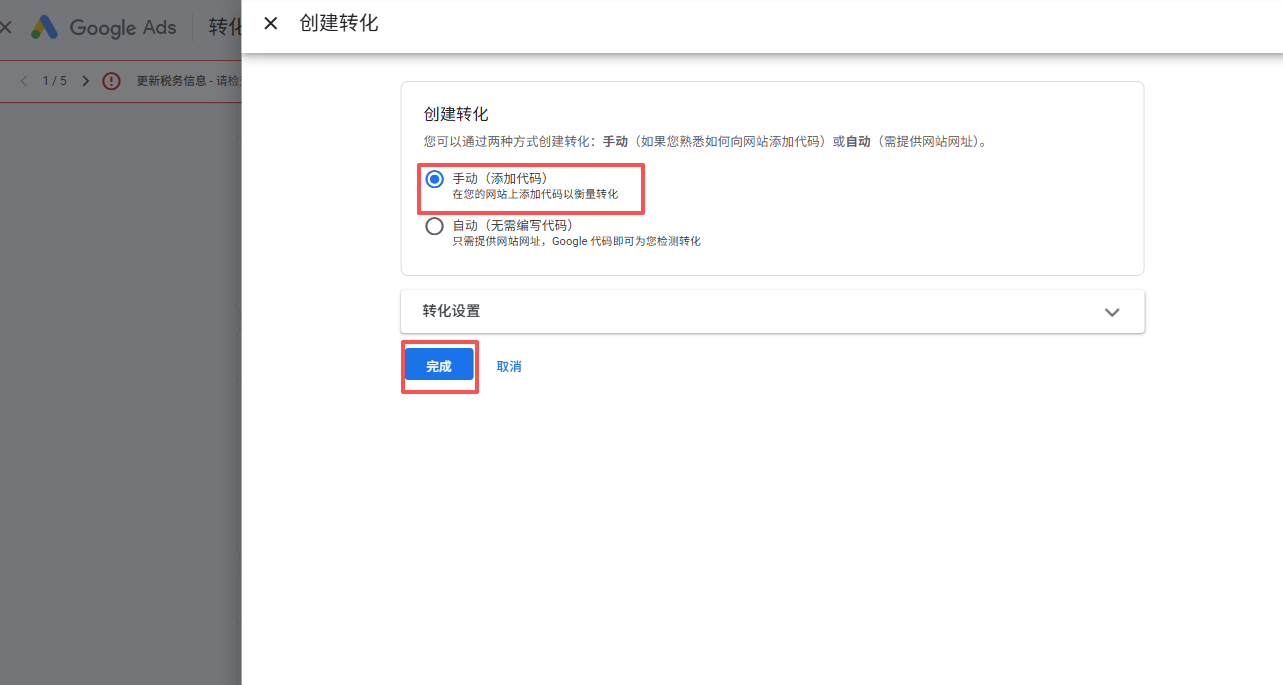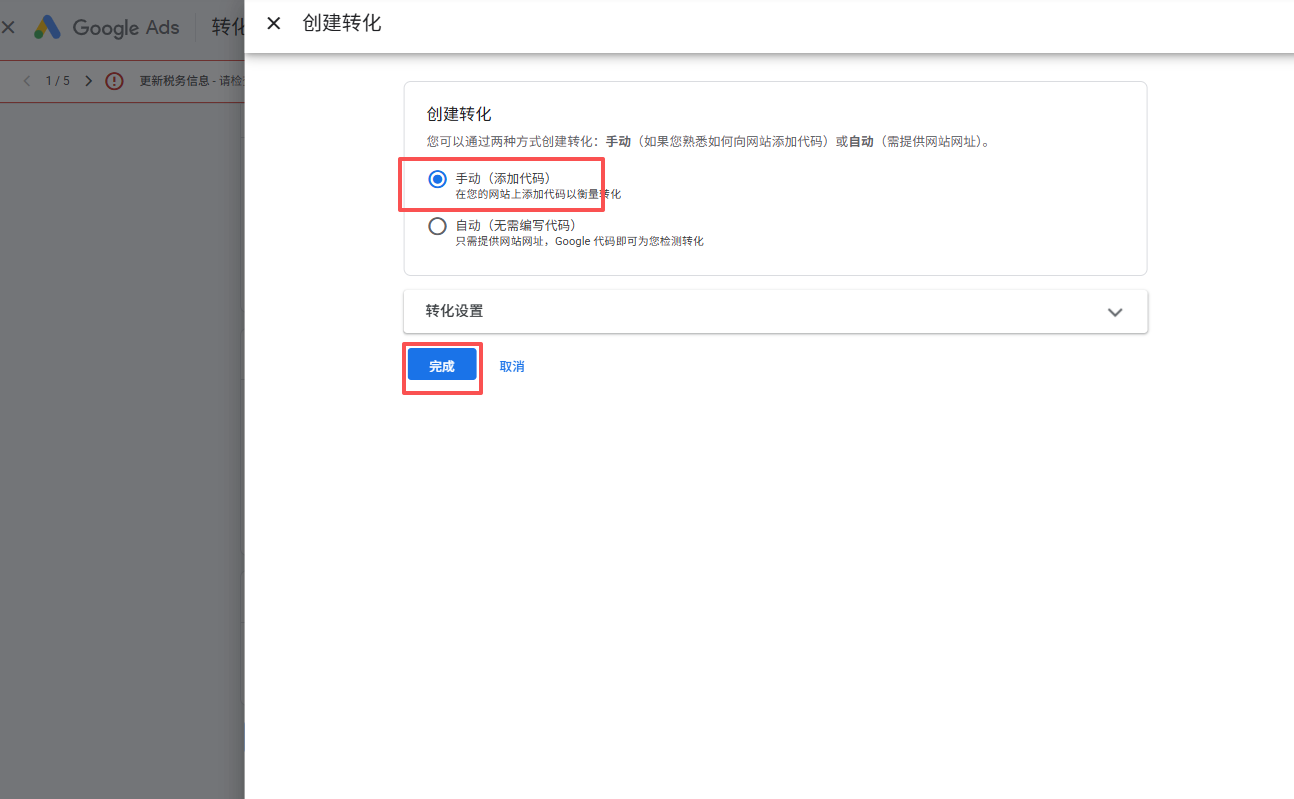 (42)每复制一个事件代码,返回到网站后台,选择对应的转化目标,并且粘贴代码保存即可