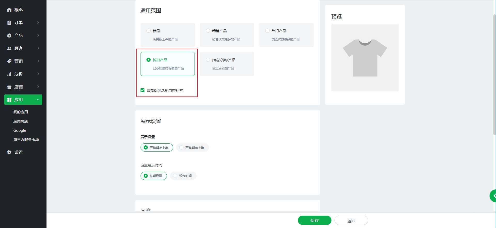 增加【覆盖促销活动自带标签】勾选项:勾选后,商品将关联销售贴纸并优先显示,同时隐藏促销标签