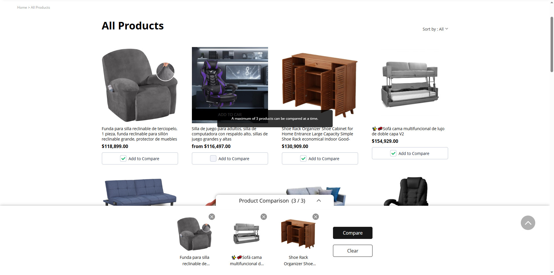 · 支持对栏内产品进行单个移除或全部清除。当产品数量降为零时,对比栏自动关闭。