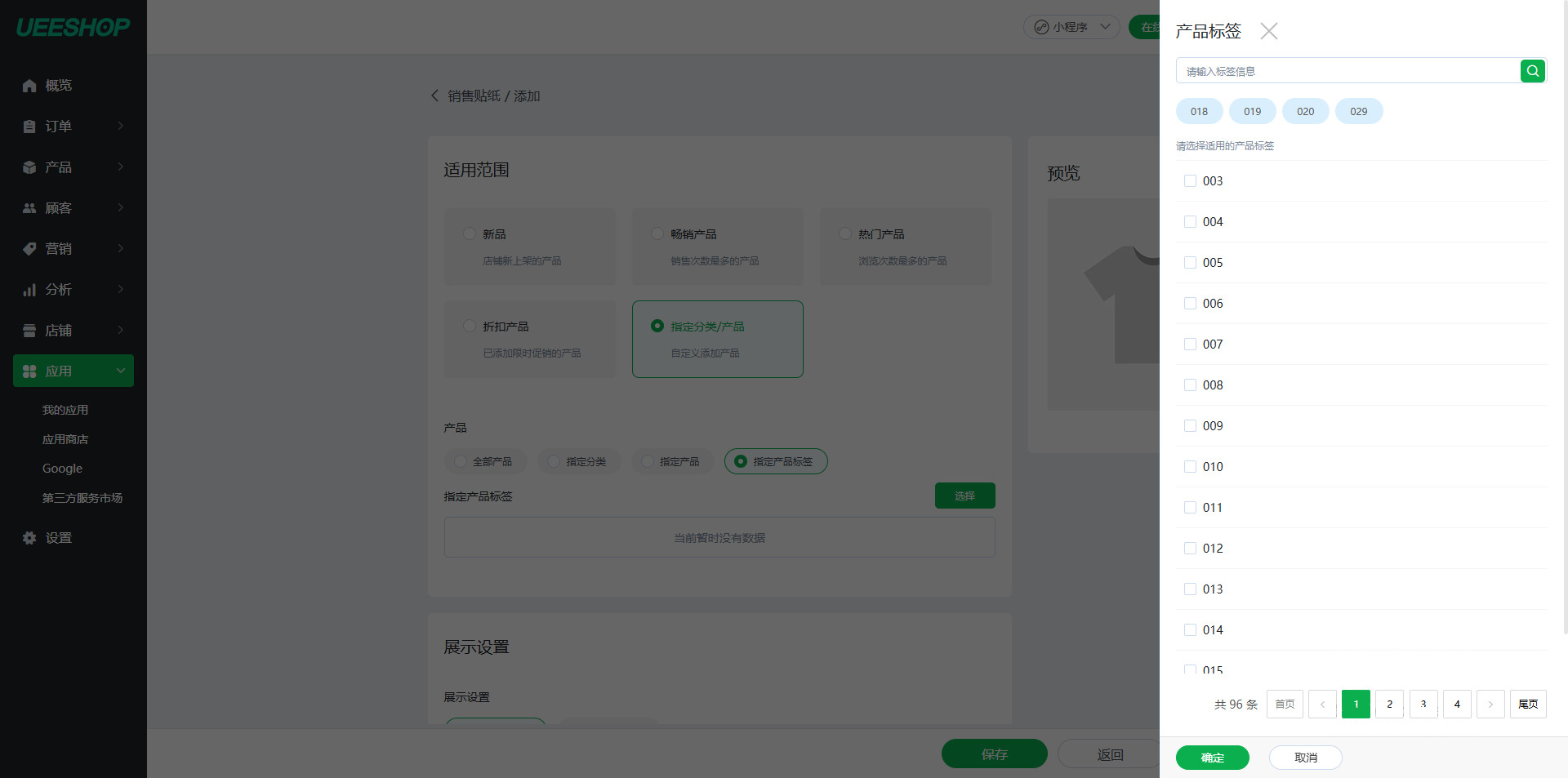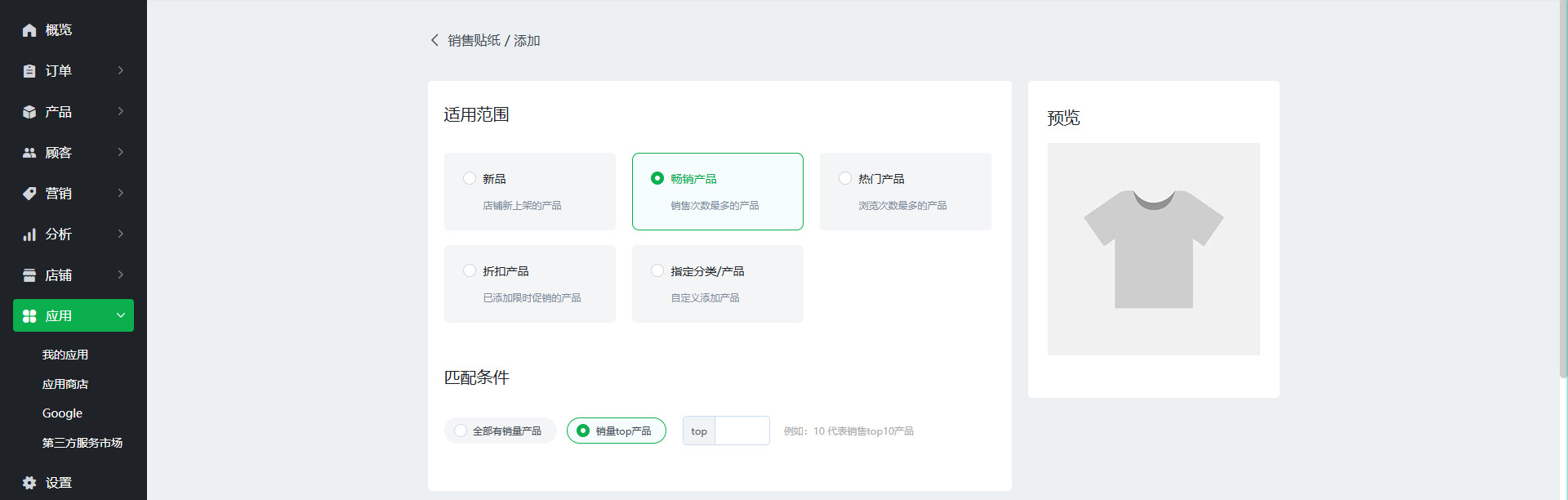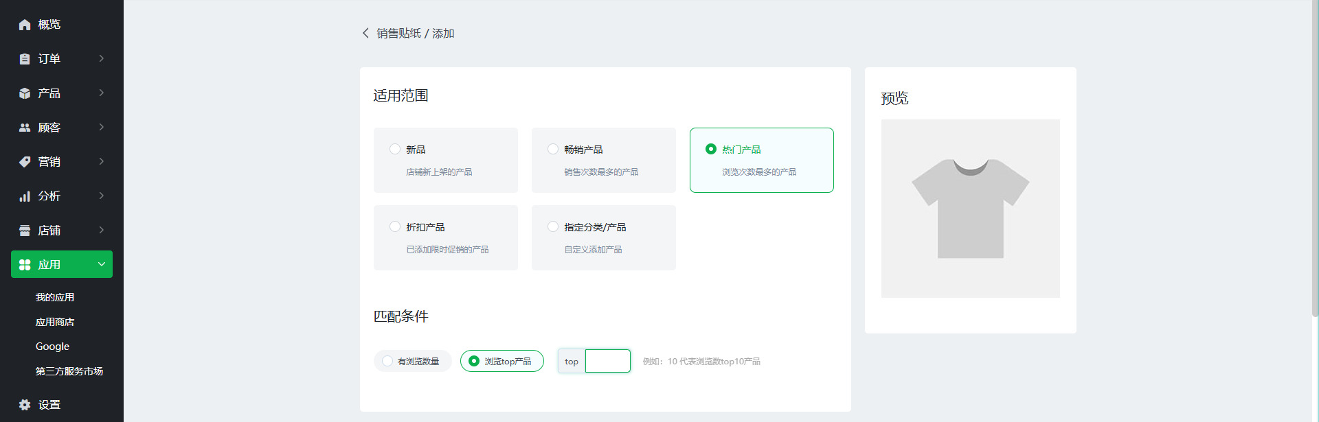 【3】增强灵活配置:新增多维度筛选与覆盖规则,支持根据新品、畅销、热门或标签产品灵活分配贴纸,从而实现更精细化的运营。