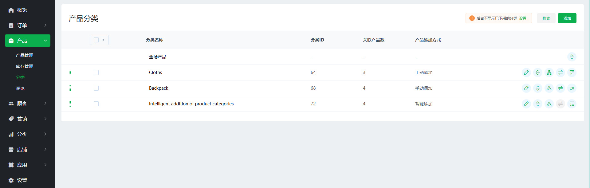 【1】提升分类管理效率:通过直观显示产品数量,减少频繁进入分类详情页操作。