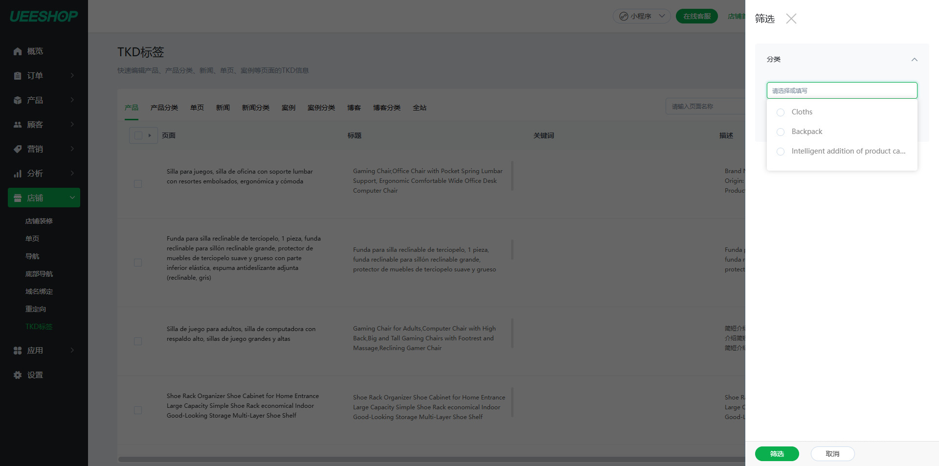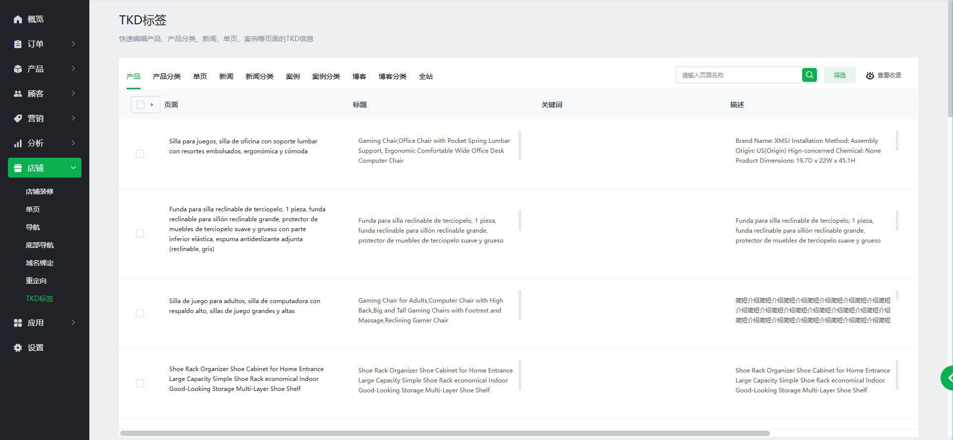 【1】优化管理体验:支持精准筛选不同模块内容,便于集中管理和批量优化TKD标签。