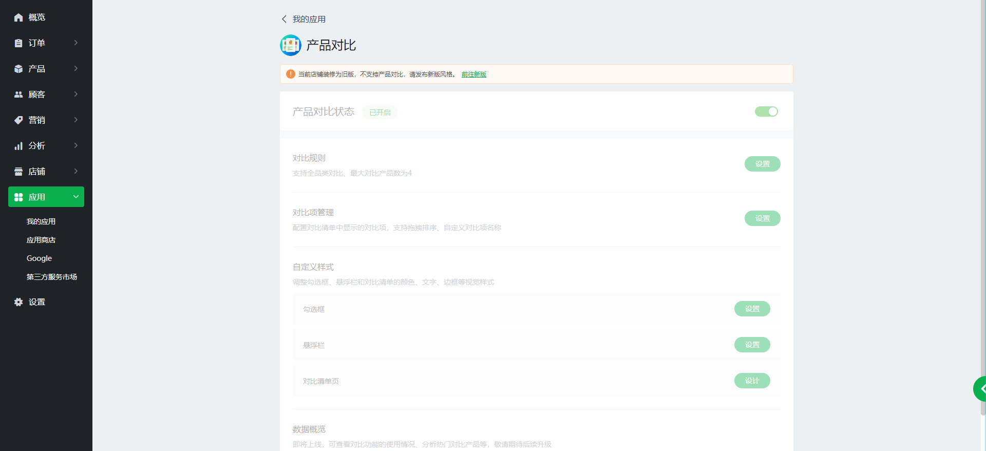 · 该应用只支持新版店铺装修,如果商家正在使用旧版店铺装修,那么应用内所有操作都无法使用,并且显示提示语,点击“前往新版”则新窗口跳转到新版店铺装修的入口