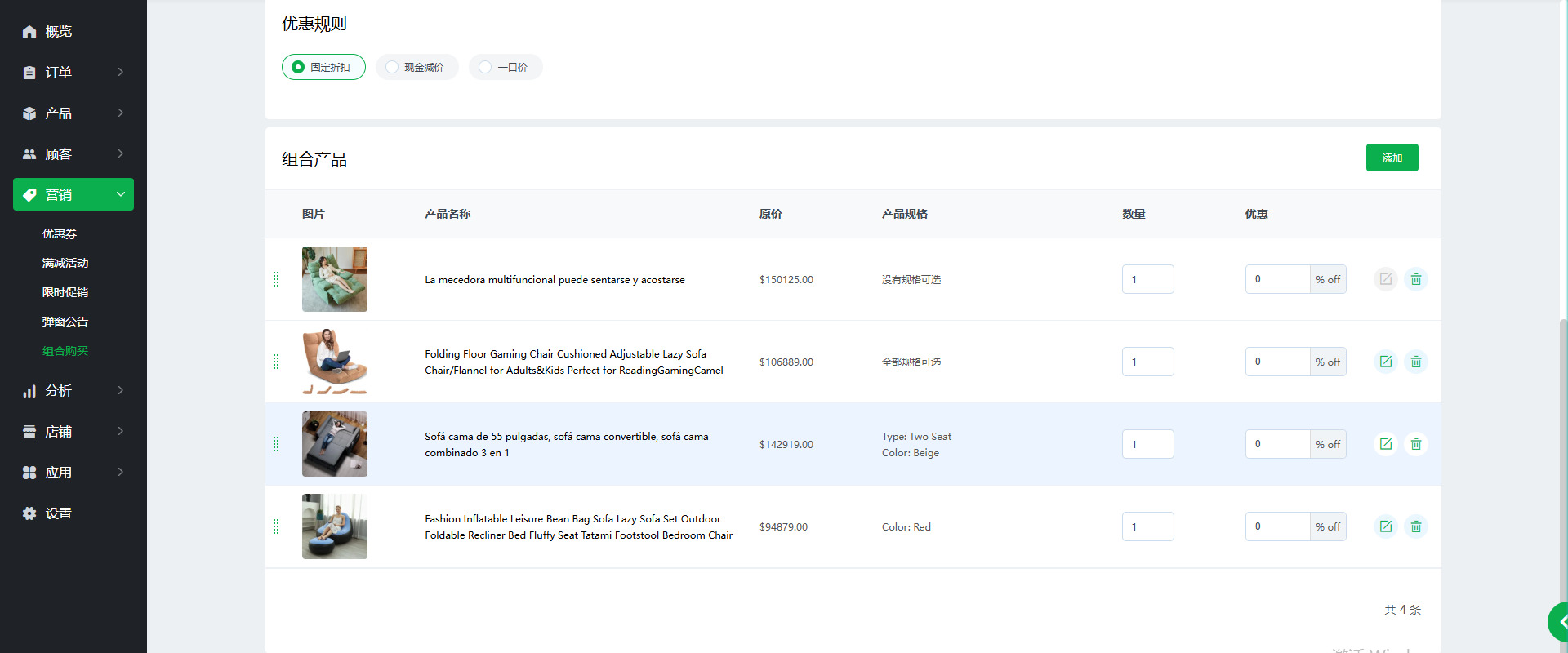 功能概述:组合购买新增产品排序功能,卖家可通过拖拽操作自由调整组合内产品的展示顺序。