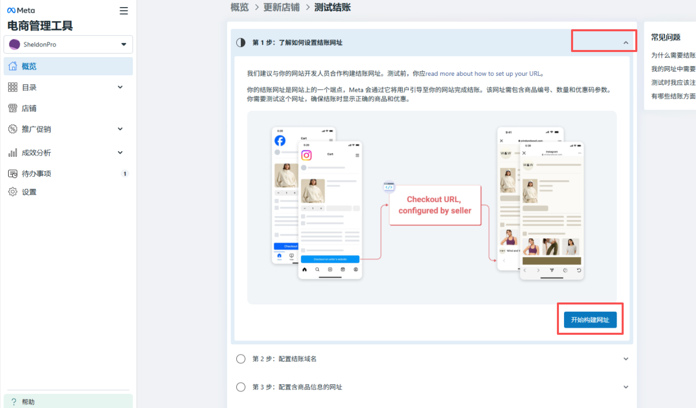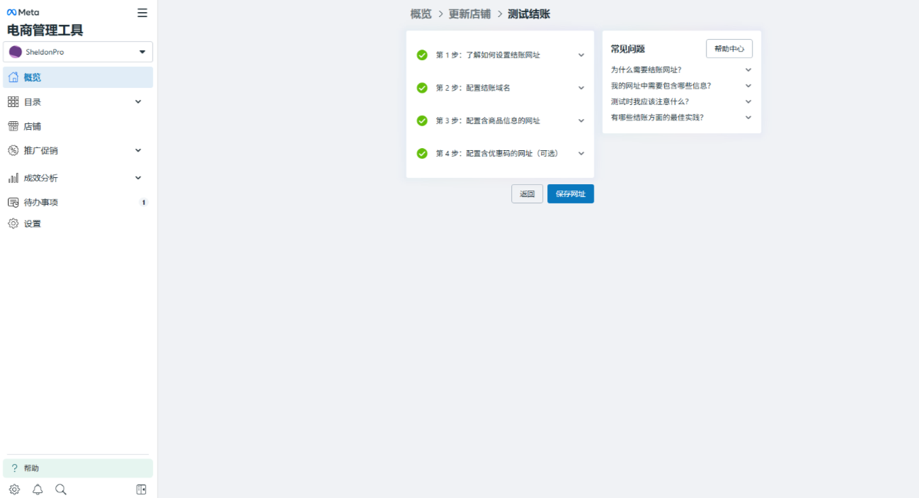 (5)获取到结算URL之后,继续回到Facebook设置界面将URL黏贴到结账网址中