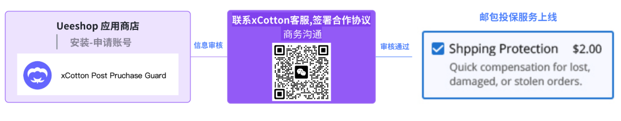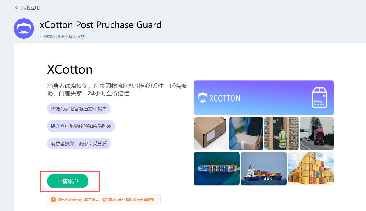小棉花xCotton为跨境电商独立站提供在线投保服务,让消费者针对物流运输、售后延保、退货运费等需求,提供保障解决方案;